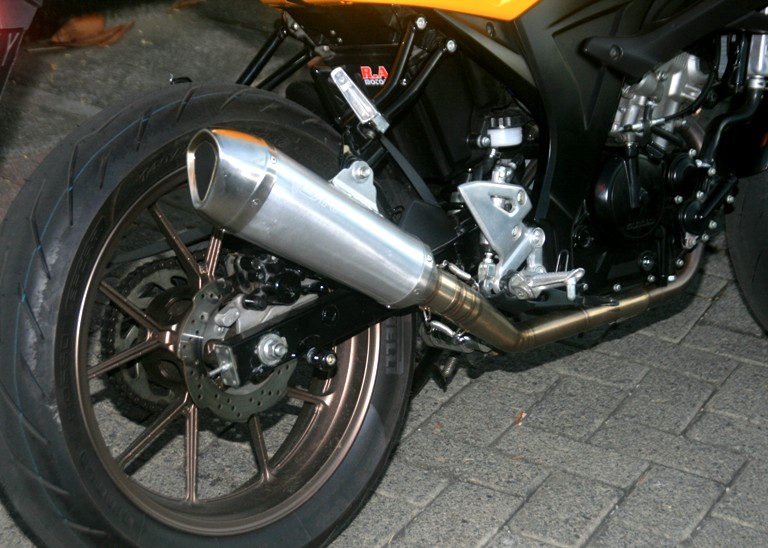 Setara dengan memperingan setingan final gear. Bahkan, buat mengejar akselerasi yang lebih bengis, final gear dijadikan 14-45 dari standarnya 15-45.