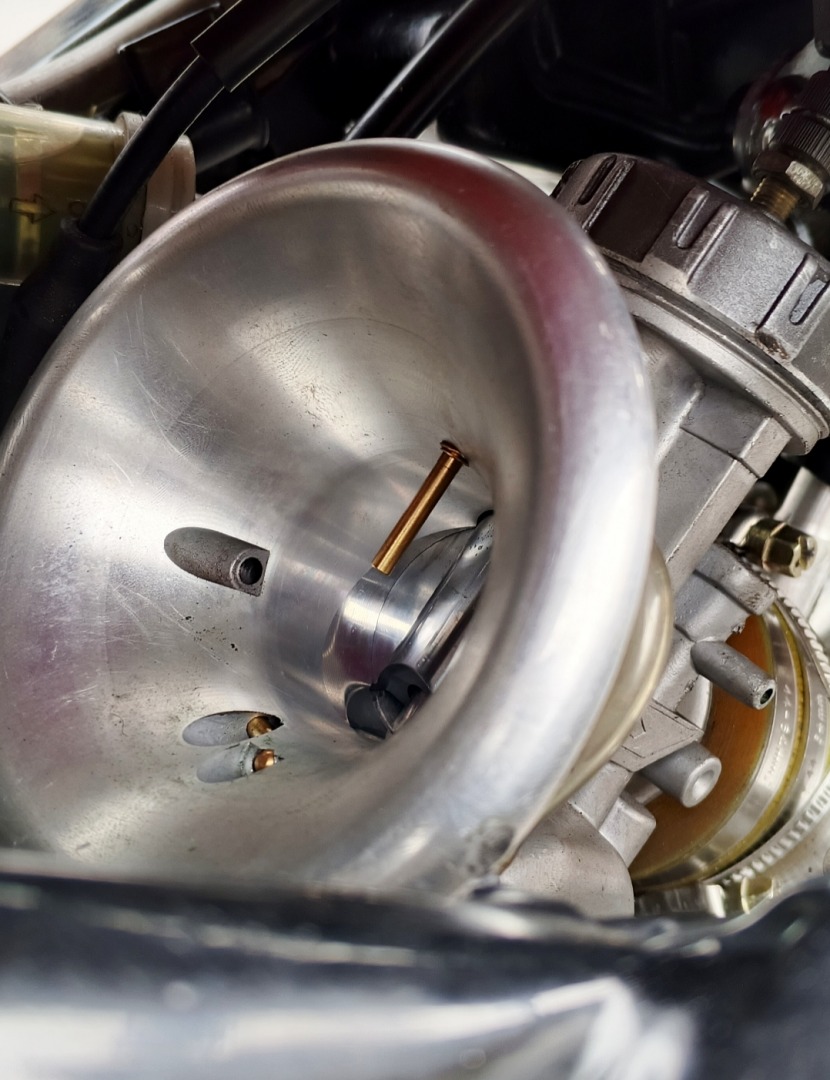 Flow debit gas segar dari Karbu KRJ 34 mm, yang ritmenya diatur membran standar modif, jadi lancar jaya.