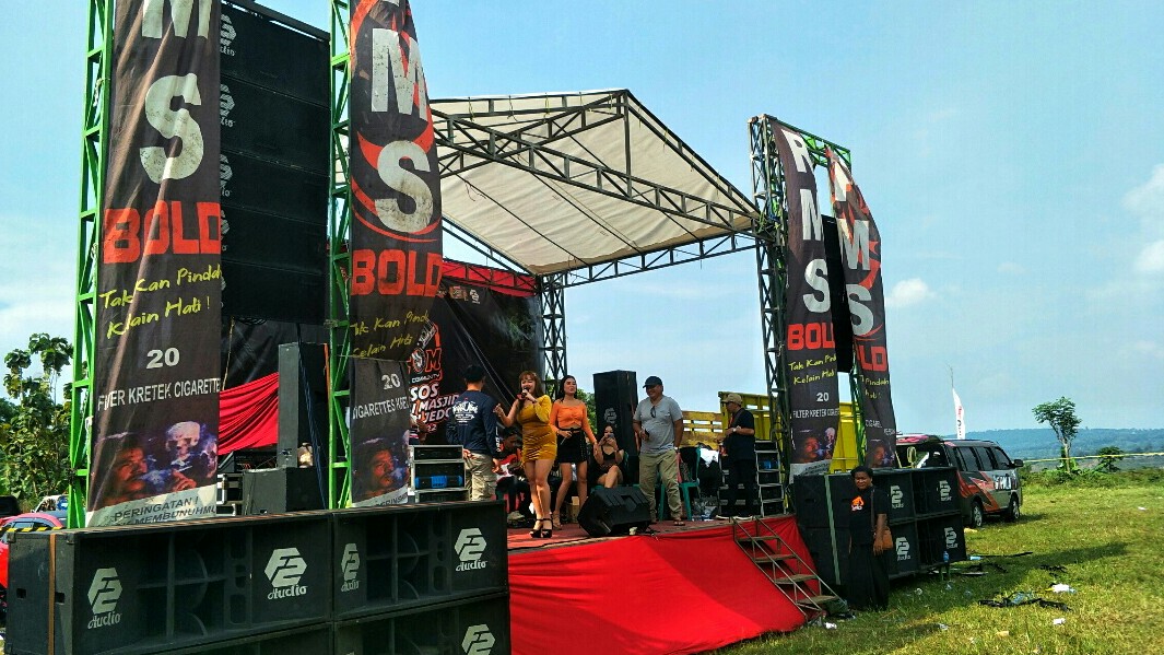 Atmosfir lintasan jadi lebih hidup, dengan Corak dan warna baner dan umbul-umbul produk Boss Mild Group.