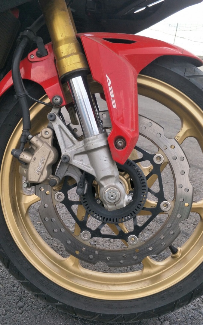 Soal penjinak laju, juga telah dilengkapi ABS, yang membuat riding makin pede, kendati kobdisi trek baru di sesi pengenalan.