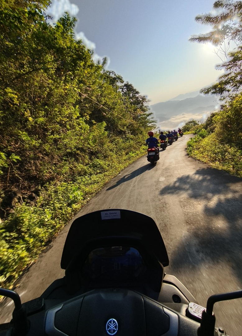 Route dari jalan poros dan dilanjutkan jalan perbukitan tepi jurang, dengan kabut tipis akses ke Bukit Mantar, kian menambah level tantangan para bikers.