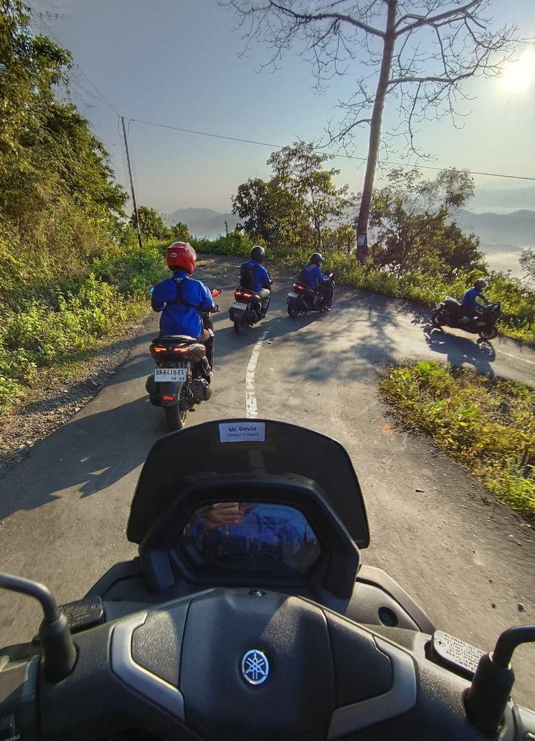 Suasana gelap yang menyelimuti sepanjang perjalanan, tak lagi mengkhawatirkan oleh sorot headlamp proji N Max Turbo, yang begitu tebal dan fokus.