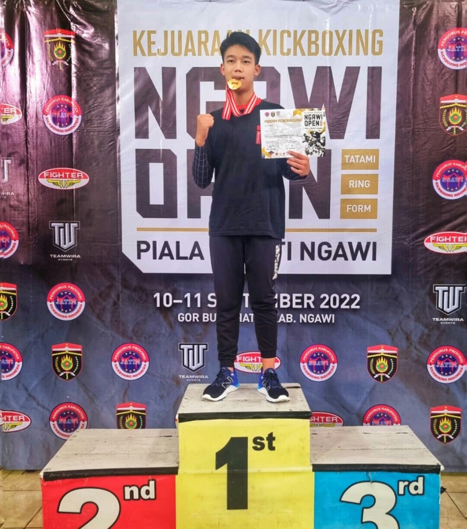 Belakangan ini namanya lagi viral usai menjadi jawara Open Tournament Kickboxing Piala Bupati Ngawi (10-11/9/2022), dalam rangkaian HUT kota Ngawi.