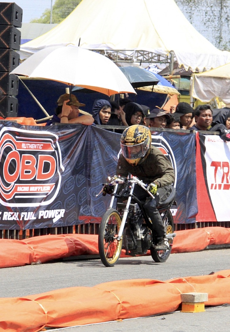 Karena bekal pengalaman di motocross dan road race, gaya mengumpan power sampai intonasi durasi pindah gigi, Farel tampak begitu familiar dan menikmati perjalanan kompetisi drag bike.