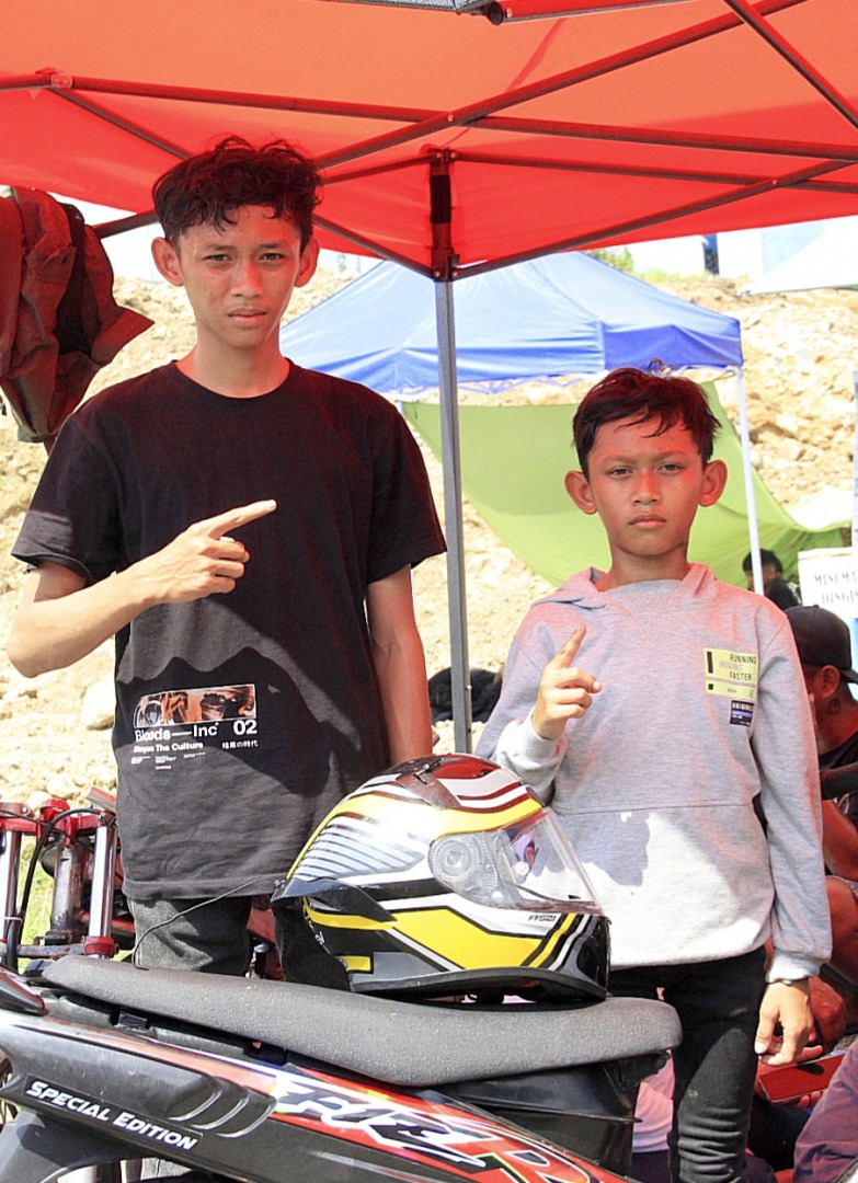 Farel tampil di kelas Bracket 9.0 detik dan kelas Satria F 150 limiter, spesial dikawal oleh Joni engine builder JRD, Ngronggo, Kediri.