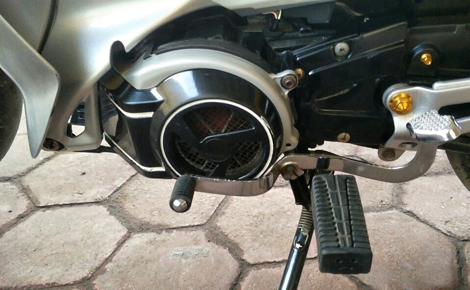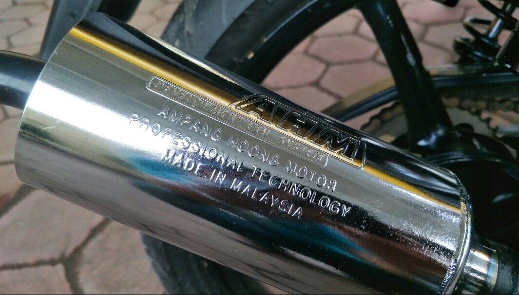 Demikain dengan knalpot yang dikanibal dari Yamaha 125Z, pada bagian perut dan silincernya.