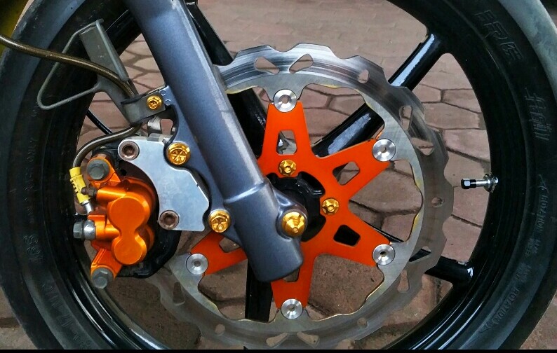 Pada piranti ciet depan berganti disc 32 cm, berikut penambahan adaptor dari almu billet.