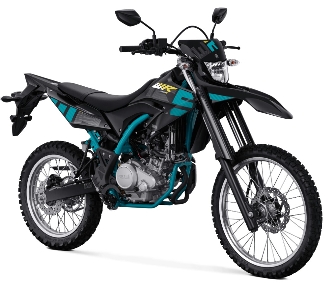 WR 155R Black memiliki perpaduan warna hitam dan cyan, yang merepresentasikan karakter sporty, agresif dan fashionable.