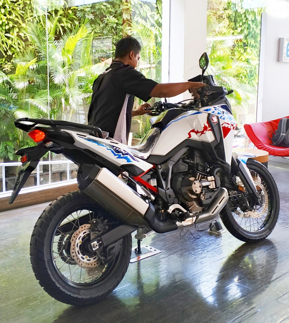 Tampilan depan memberikan kesan garang, didukung desain jok dan tangki bensin ramping berkapasitas 18,8 liter yang membuat pengendara lebih tangkas di medan off-road, sekaligus menghadirkan posisi berkendara khas rally.
