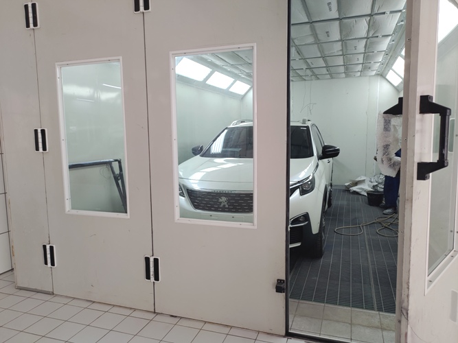 Semua ruang di desain terpisah, tentu dengan instalasi yang sesuai dengan proses kerja. Bahkan untuk bahan baku kami menggunakan produk bermutu dan berkualitas tinggi sesuai standar Astra Peugeot.
