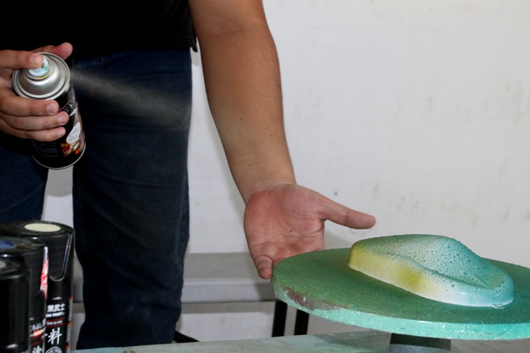 Agar bidang yang dikehendaki, bentuknya kagak kabur atau blur. Teknik spraynya, pastikan smooth dan tipis dari jarak 30 cm. Agar, tekanan spray cat, tak sampai menyelinap di luar bidang dan bentuk yang dimaksud. teks - foto : collins