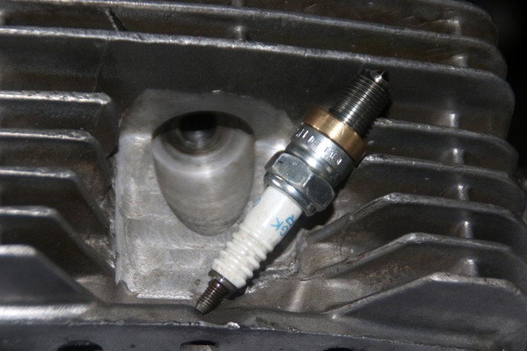Bahkan pengaruh dari makin rapatnya susunan empat katup yang terpakai, sudut pemasangan busi jadi berubah lebih tegak. Tapi, secara posisi di titik yang sama, jadi beda sudutnya saja. Konsekuensinya, proses pemasangan busi mesti ditambahkan bushing 6 mm sebagai pengganjal. “Mengingat, ketika sudut busi lebih tegak, ujung diode busi terlalu nongol, ”detail Arul.