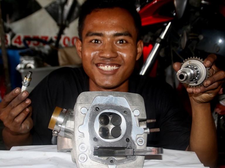 Untuk biaya pembuatan silinder cop Mega Pro SOHC 4 katup ini, Swega pasang bandrol Rp. 5,5 juta. “Konsumen tahu beres jadi dan bergaransi, bahan keseluruhan dari kita, ”promo Swega. teks - foto : rio