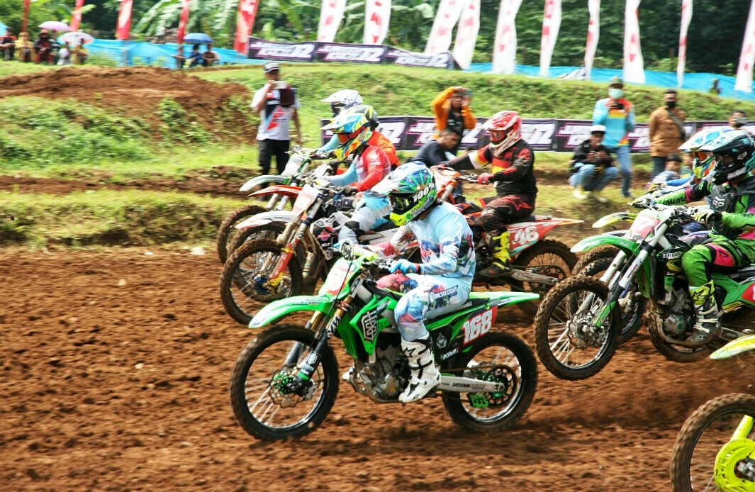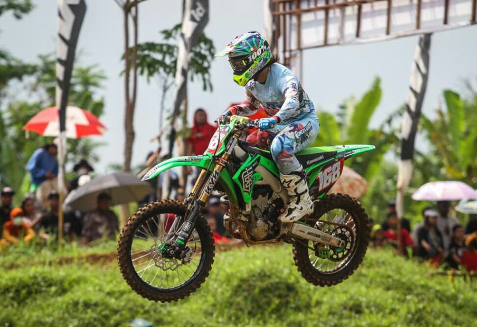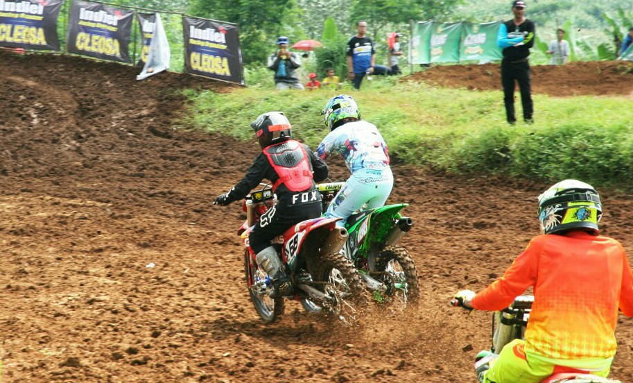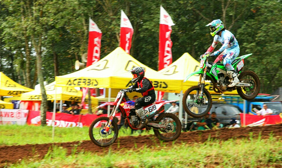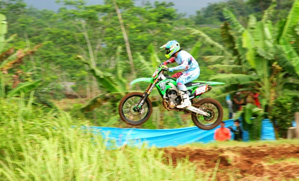 Penampilan Mevans di atas angin, saat Moto 1 kelas Komunitas Motocross Indonesia Pro.