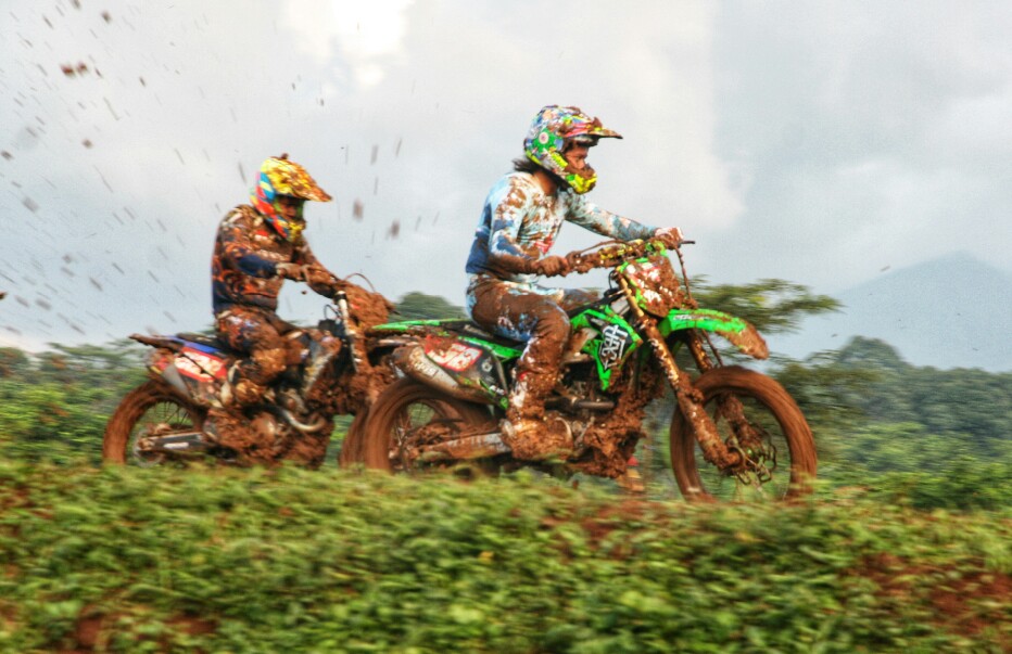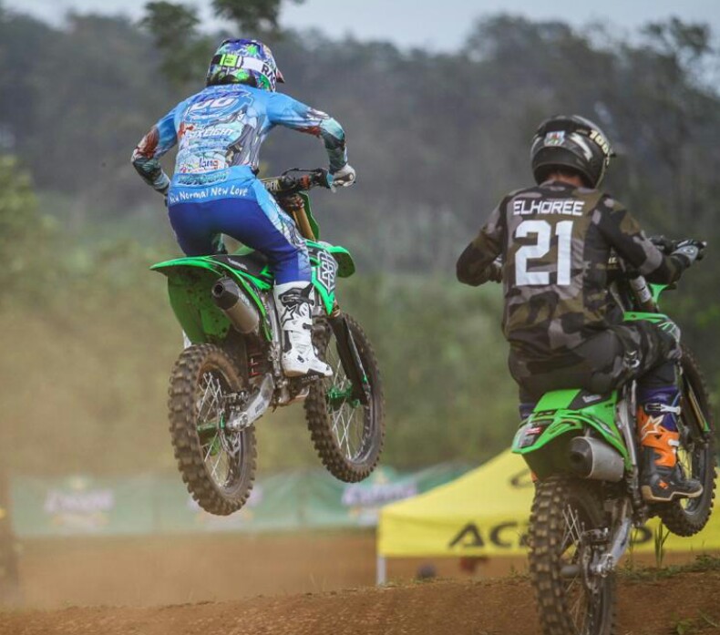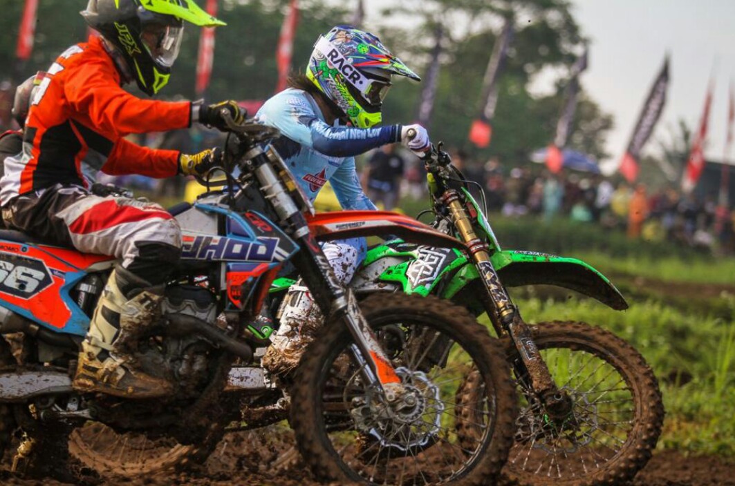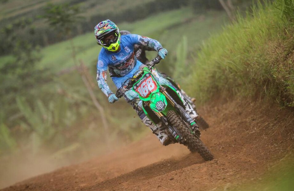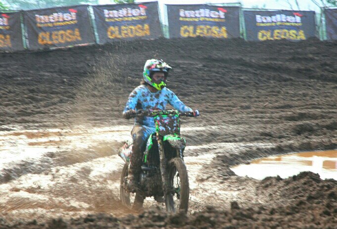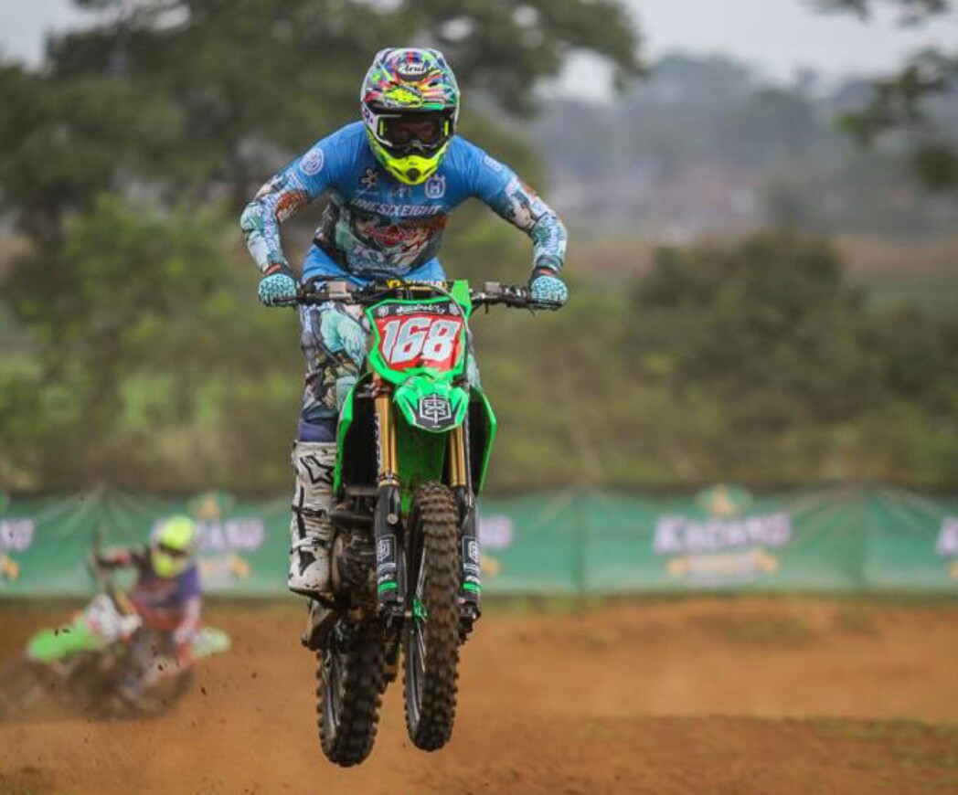 Penampilan Mevans di atas angin, saat Moto 1 kelas Komunitas Motocross Indonesia Pro.