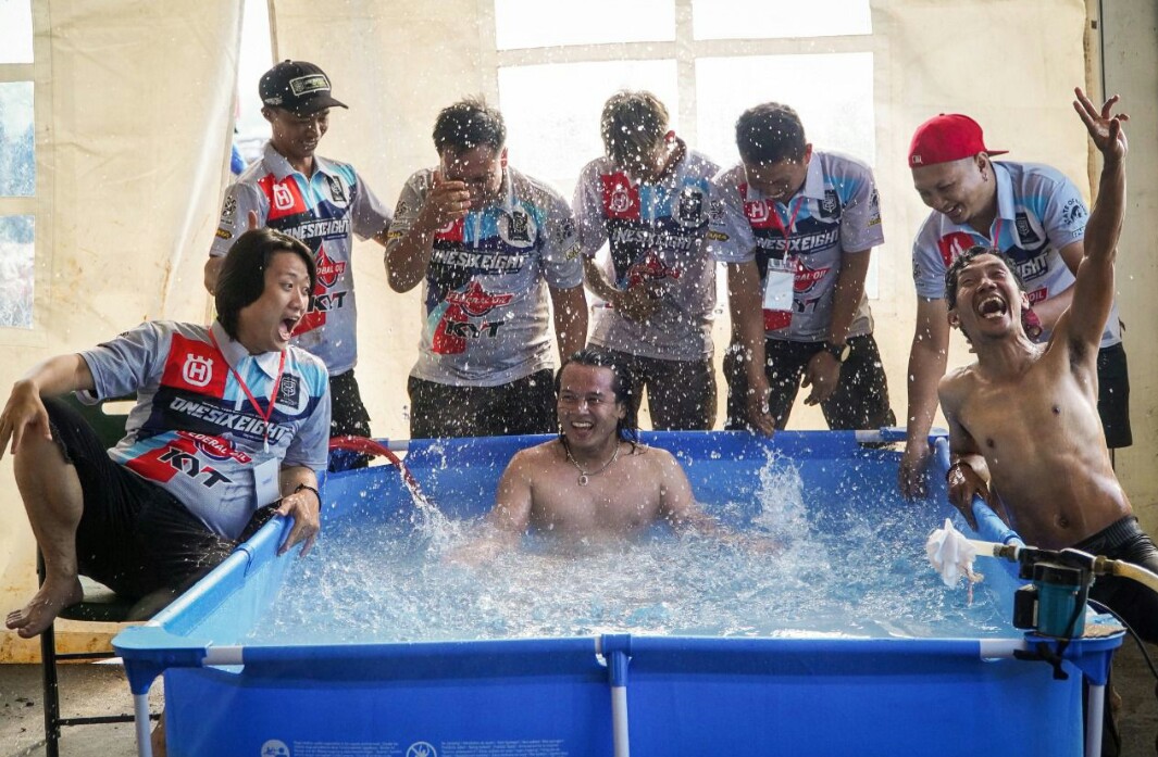 Sampai kolam Jacuzzi knock down, mesti diusung di Mega Paddock Onesixeight Motocross Team.