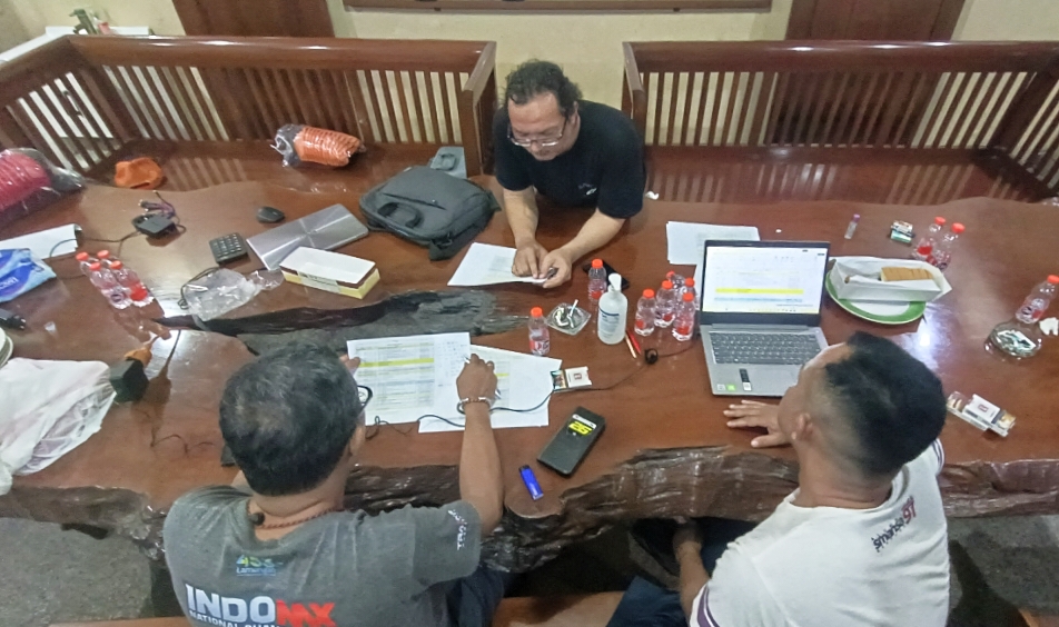 Di kesempatan yang sama, tampak pula Nyoman dari PP IMI dan Letkol Laut (T) Bambang Kasilab Mesin Labinkimat Dislitbangal, menyusun persiapan teknis sampai rundown jalanya lomba.