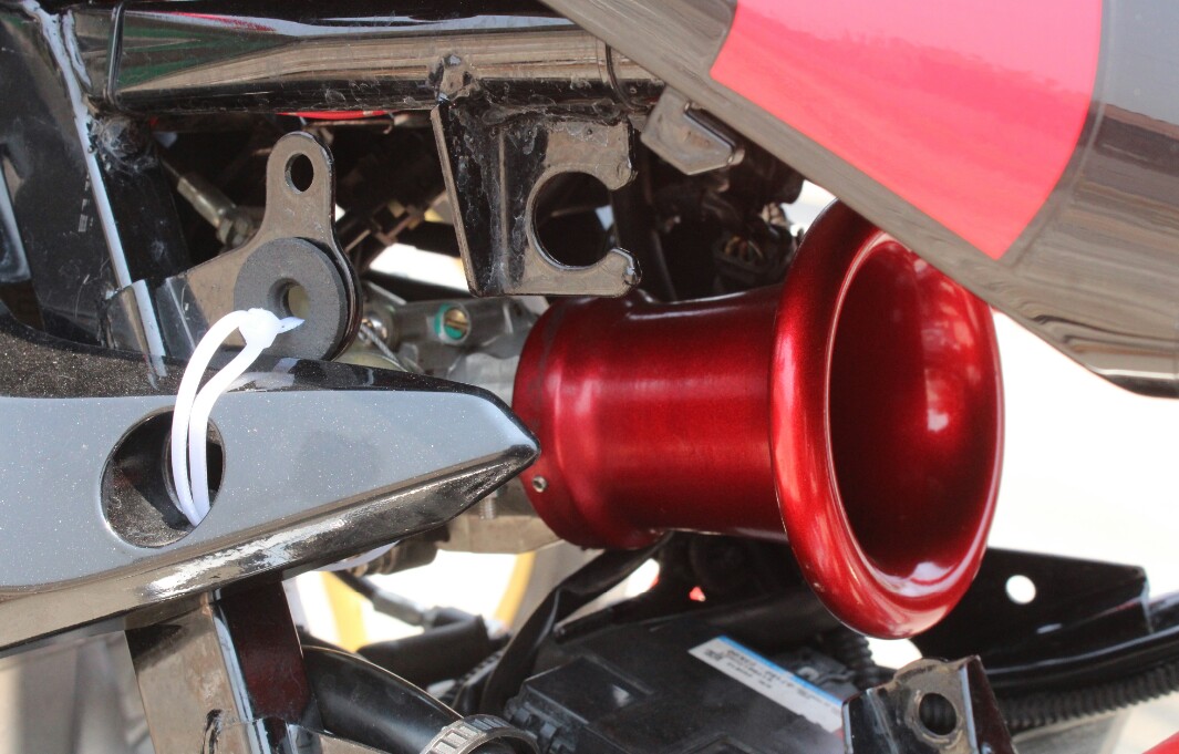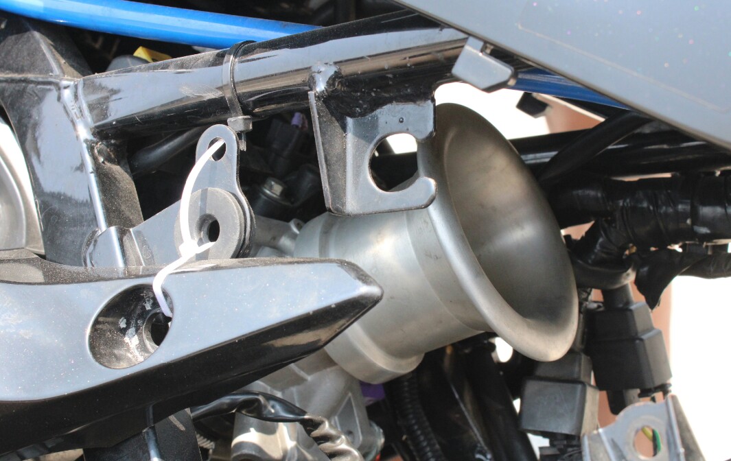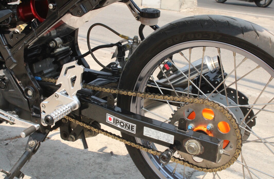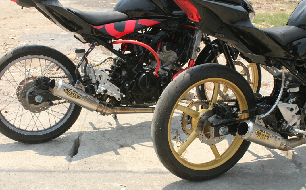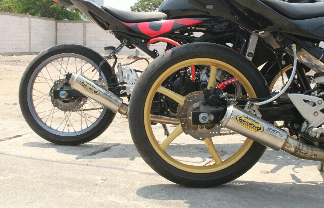 "Termasuk racikan knalpot BSS, dengan leher 35 mm, baffle 38 mm dan sarangan 50 mm, juga diproyeksikan mengawal gasingan tengah atas lebih mulur, "urai Ridho.