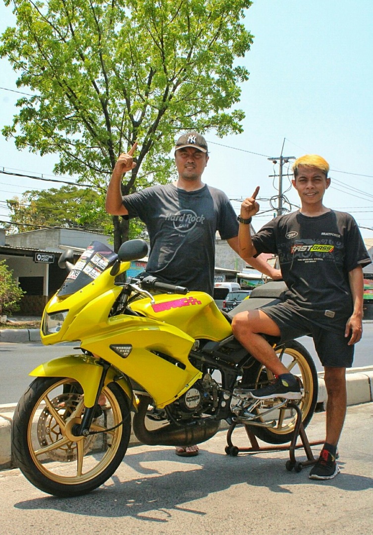 Salah satunya Bagas owner GSX R150, berdecals biru merah, yang pacuan daily use-nya, jadi momok di lintasan karapan kelas Sunmori Sport 200 cc.