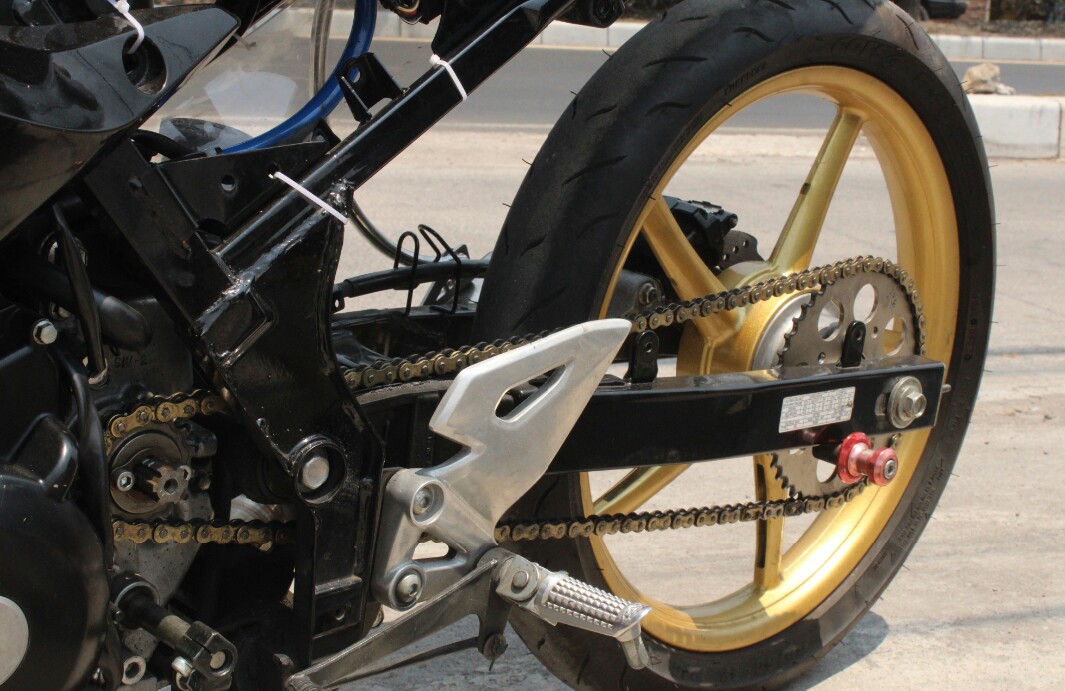 Sedang, tipikal bawaan motor, dibuat bengis oleh Ridho, melalui angka perbandingan kompresi 13,5 : 1 dan dijamin pemakaian kampas kopling Satria F berikut pegas kopling JFK. enea