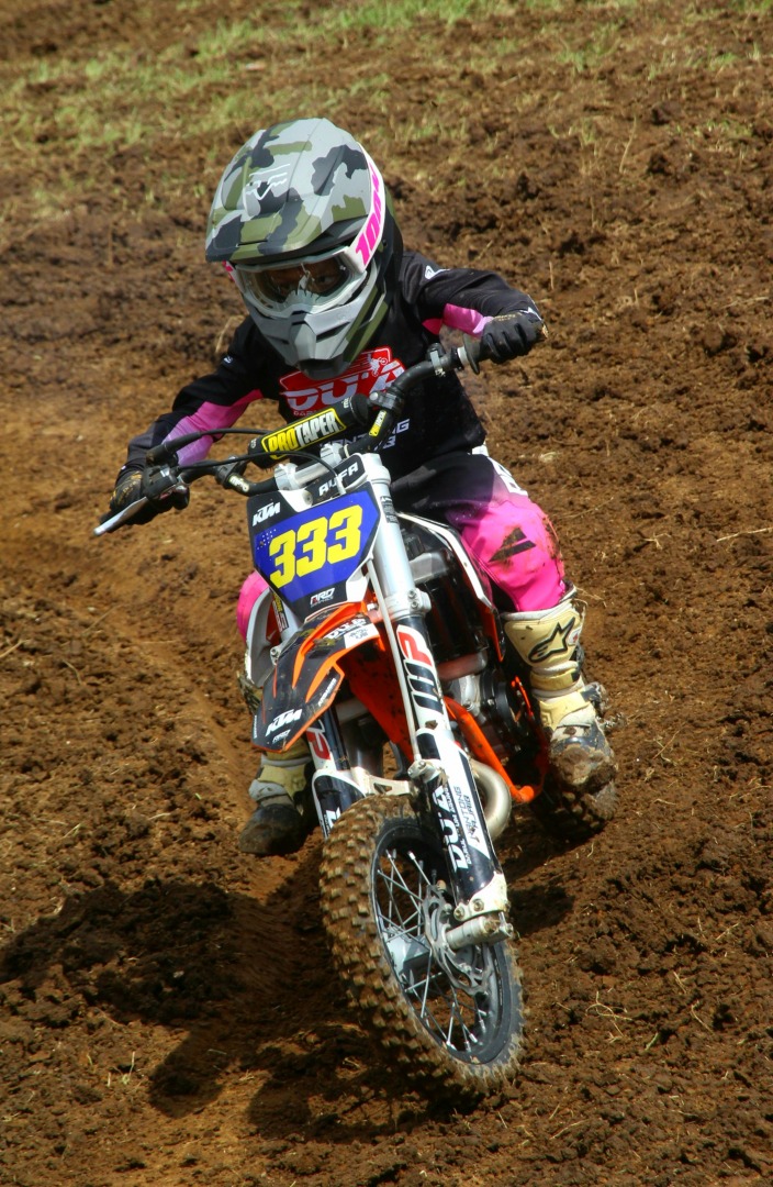 Serta Aufa crosser berusia 6 tahun dan Elbara berusia 8 tahun, yang masing-masing intens ditempa pada level MX50.