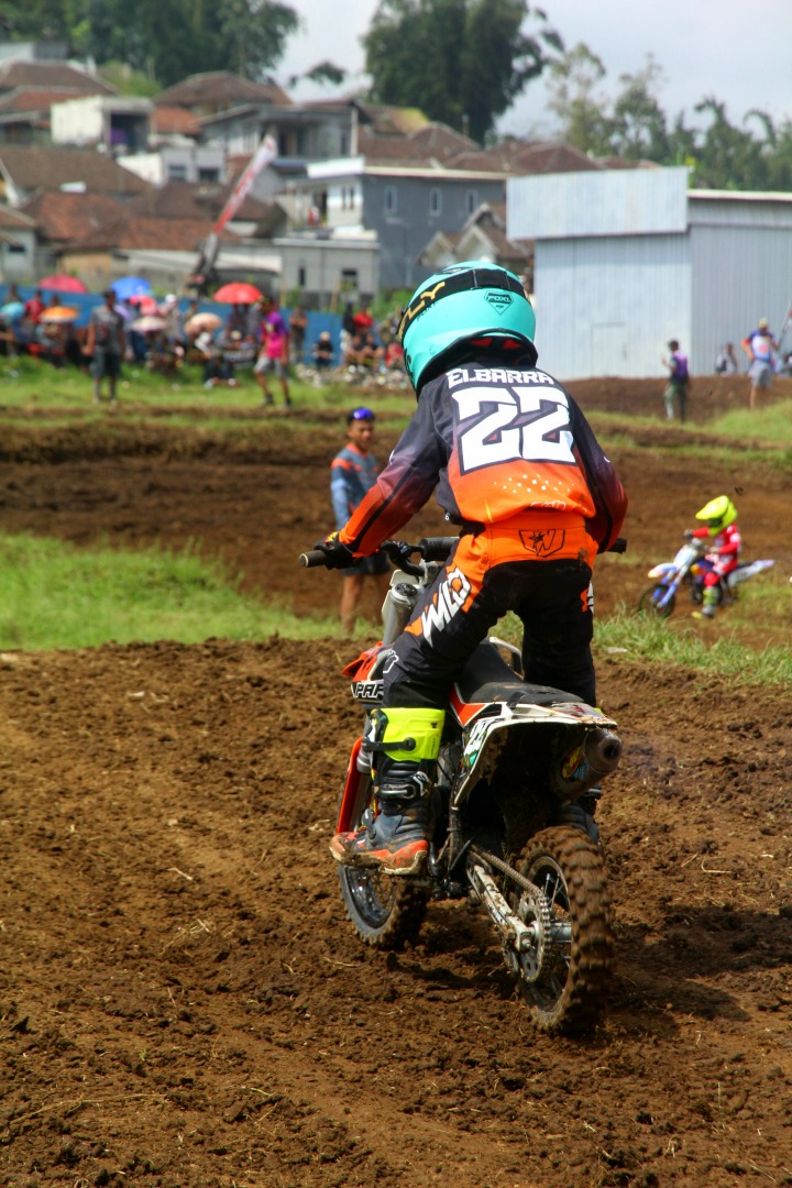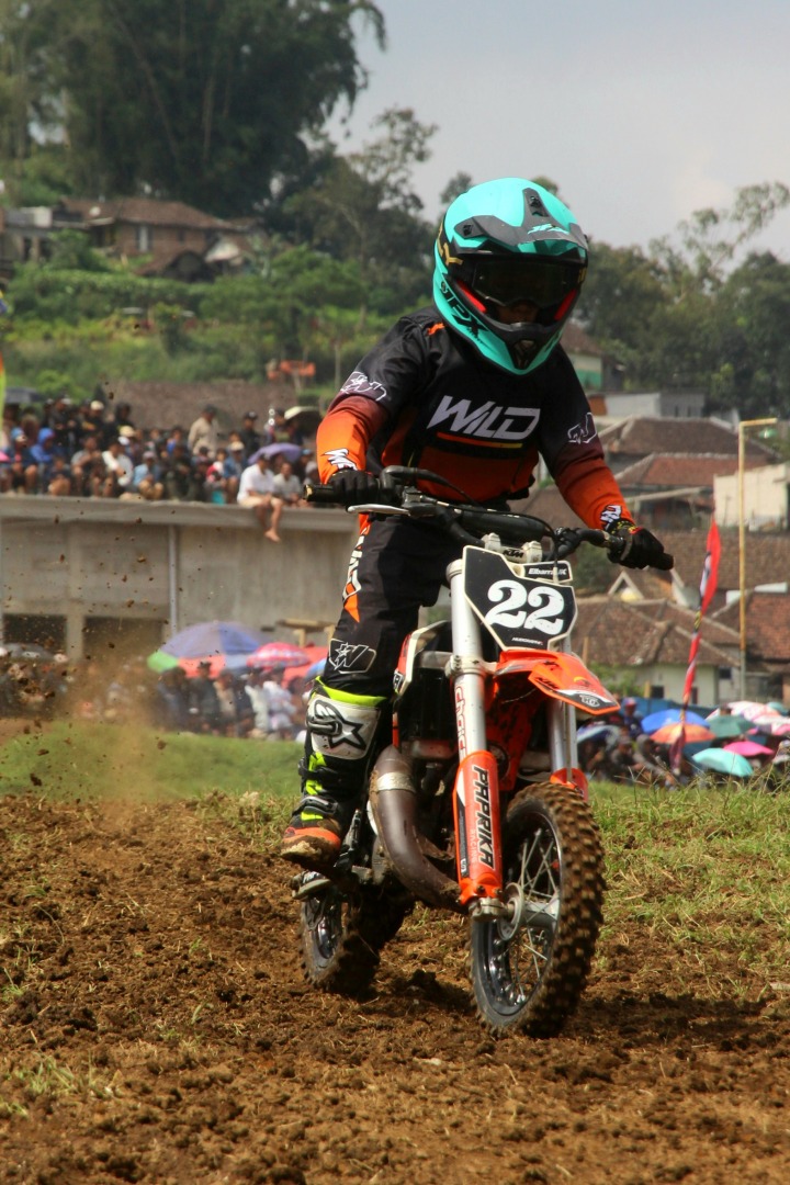 Penampilan Hadziq layaknya crosser Pro, di MX50 cc, intonasi RPM dominan bergasing diatas, bahkan telah tertanam mindset bahwa berm adalah stopper.