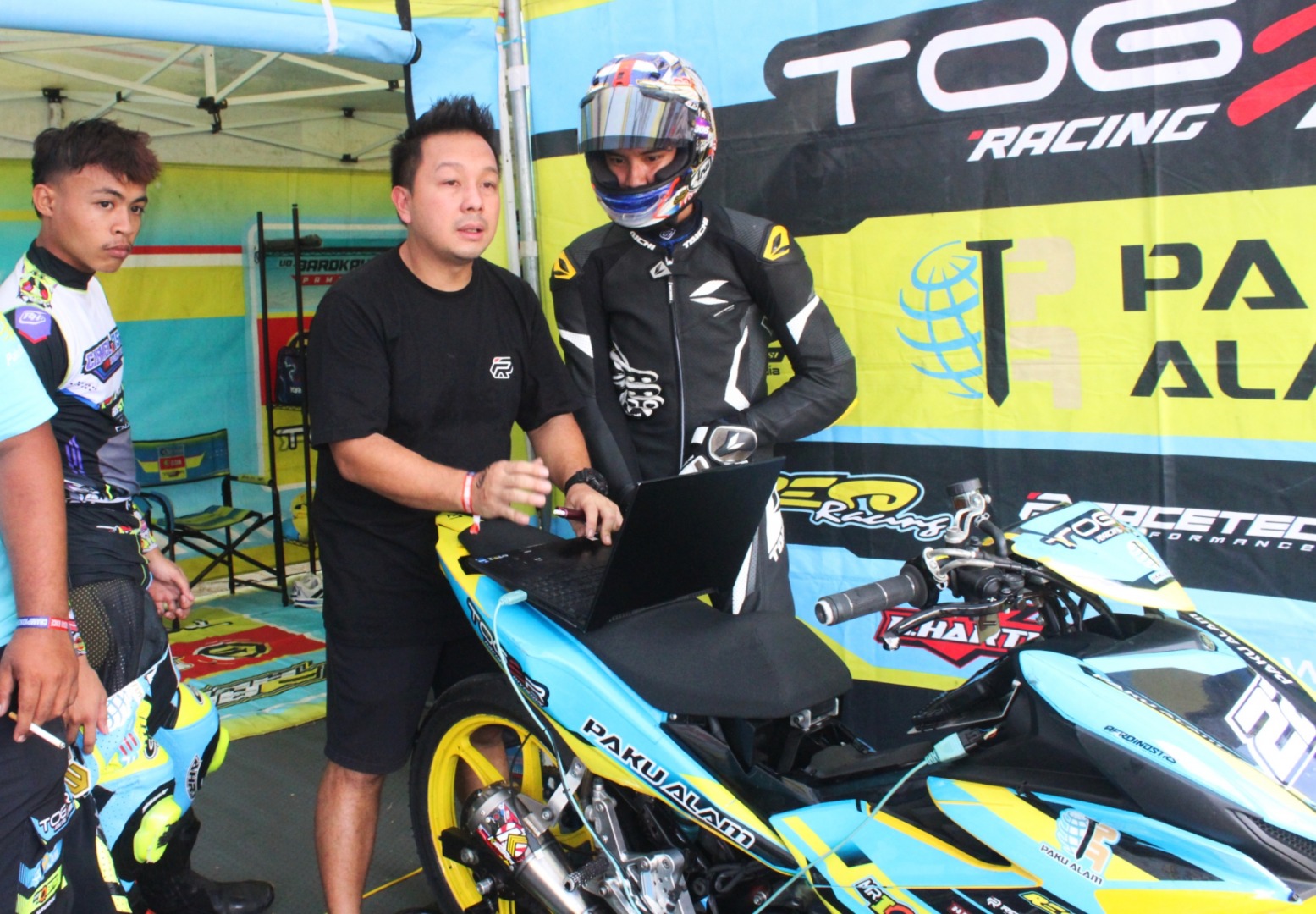 Tampak kesibukan Koh Leon dan pit crew, menganalisa record history sistem pengapian dan flow rate, usai M. Gibran dan Felix PM testcase saat free practice.