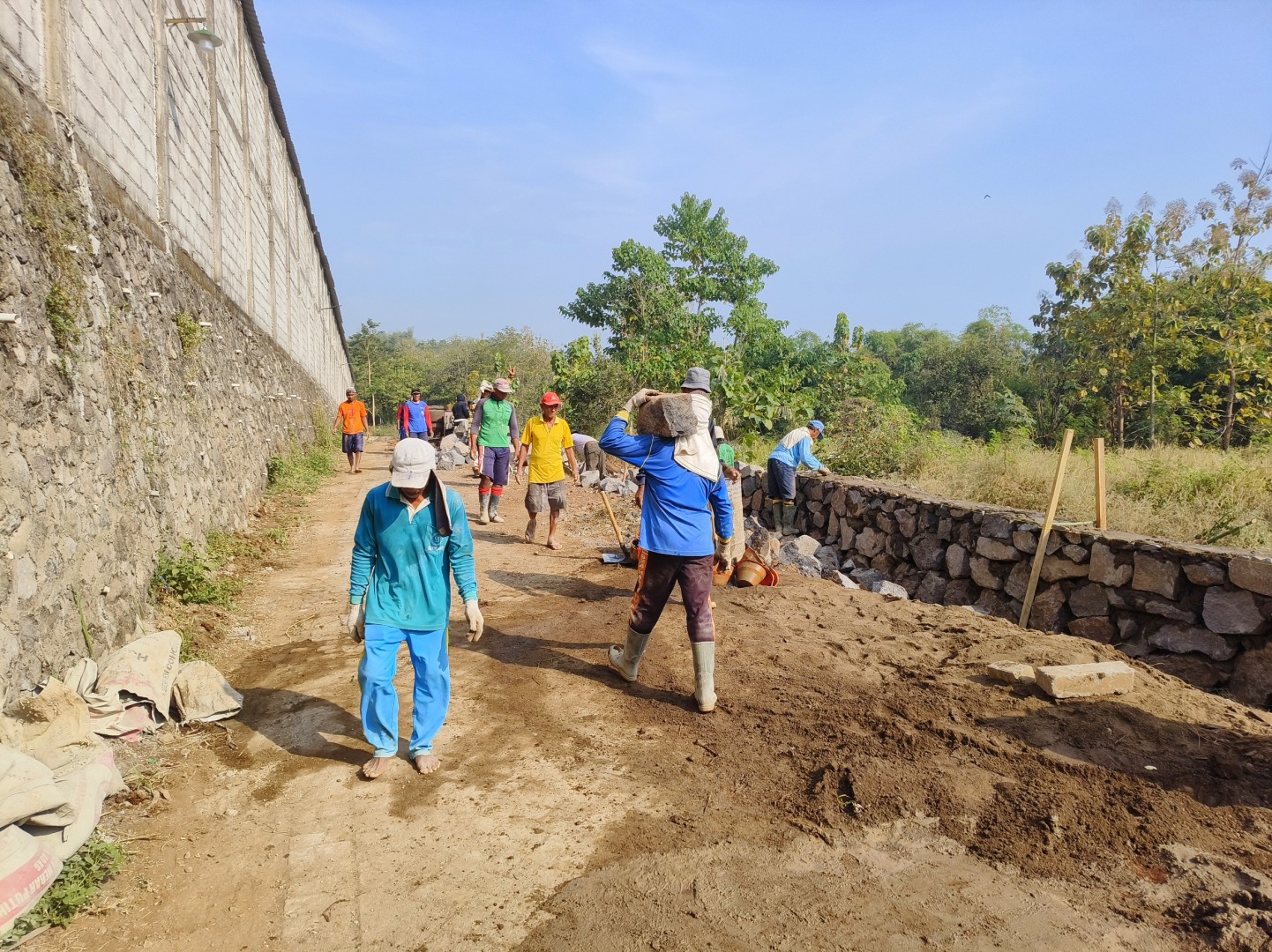 Tampak mulai dikebut penambahan dinding pembatas, untuk kebutuhan lalu-lalang service truck dan kendaraan official team.