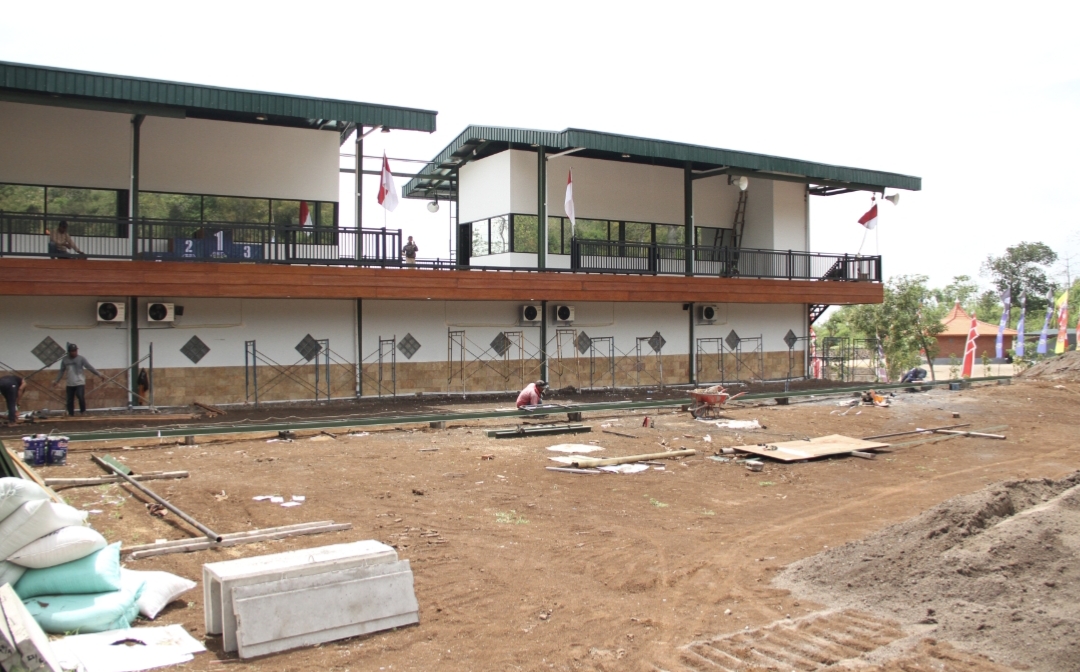 Juga pembuatan jalur by pass lintasan untuk kebutuhan team medis, instalasi saluran air kebutuhan penyiraman sirkuit, serta rangka baricade start.
