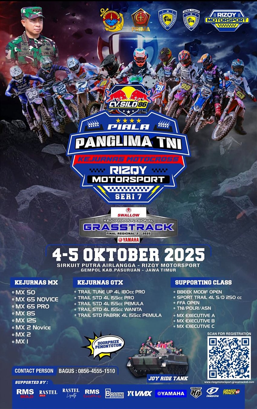 Bahkan, sesi persiapan Rizqy Motorsport Panglima TNI Cup Kejurnas Motocross 2025 Seri 7 & Grand Final Kejurnas Grasstrack 2025, di rangkaian HUT TNI ini, sejalan dengan proses merampungkan sarana prasarana sirkuit Putra Airlangga, Gempol, Pasuruan.