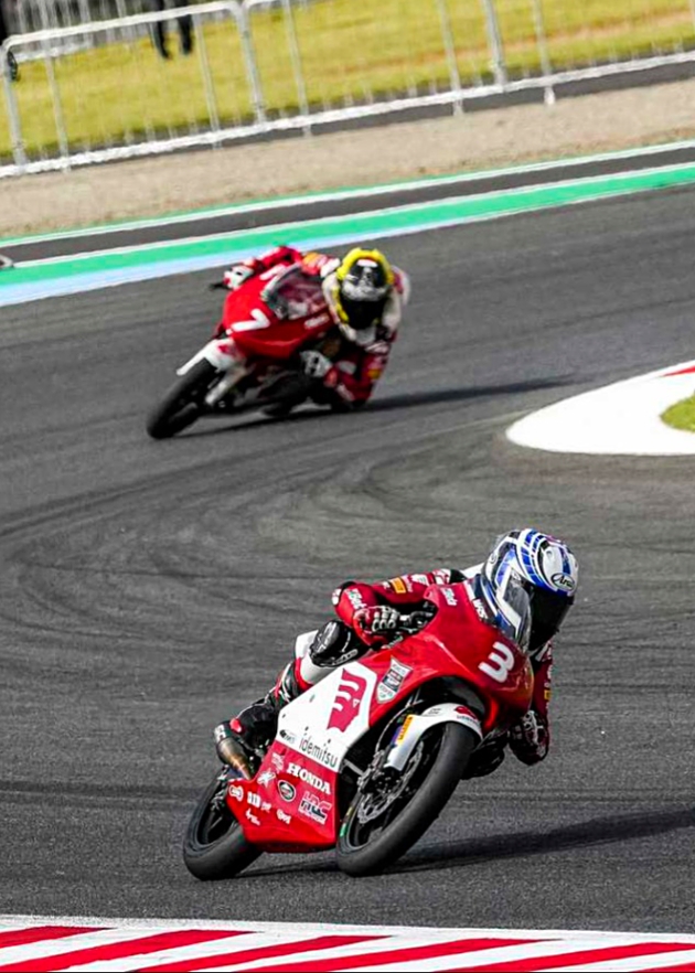 Rider muda berbakat berusia 14 tahun asal Tangerang, Banten ini juga merupakan lulusan AHRS yang telah menorehkan prestasi gemilang dengan tiga kali podium pada ajang Idemitsu Honda Thailand Talent Cup (TTC) 2025 di Chang International Circuit, Buriram.
