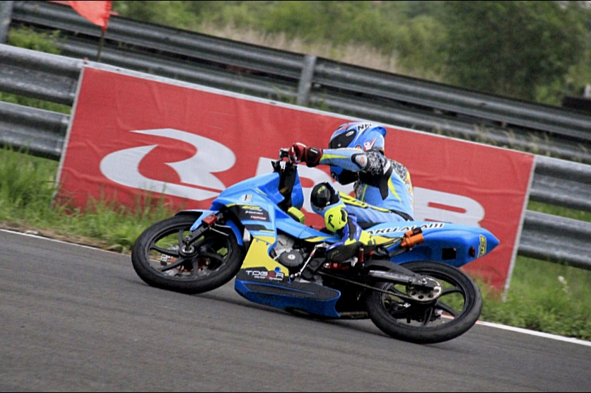 Sedang Leon Chandra begawan Racetech, tetap mengawal pacuan Rio Andrianto, di kelas Bebek 4 tak 130 cc MP2 Expert.