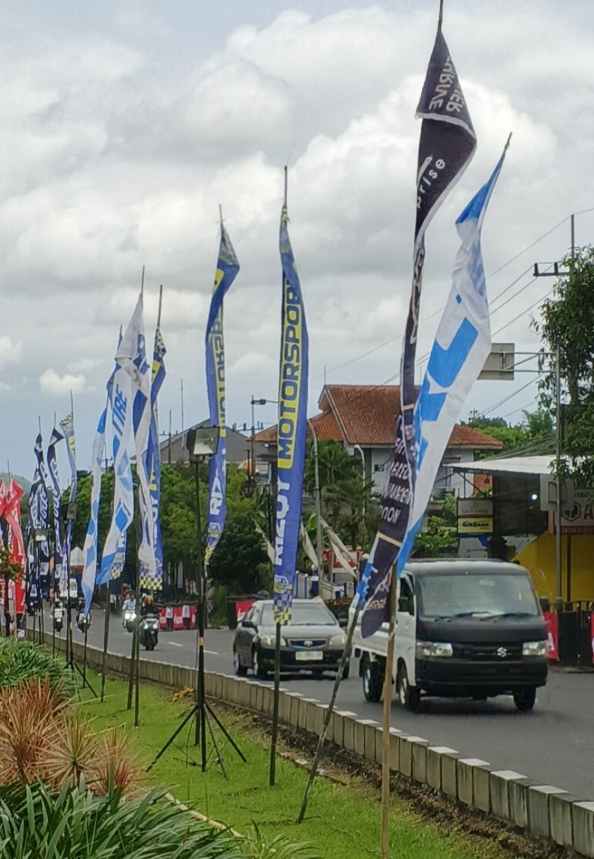 Baner dan umbul-umbul yang biasanya berkibar di kejuaraan bergengsi skala Nasional, hingga international, seperti Motocross, MX GP, Drift Championship dan European Touring Car Championship itu, sontak membuat atmosfir Batu Night Race - Kejurprov Jatim Road Race 2025, jadi makin bergengsi dan berkelas.
