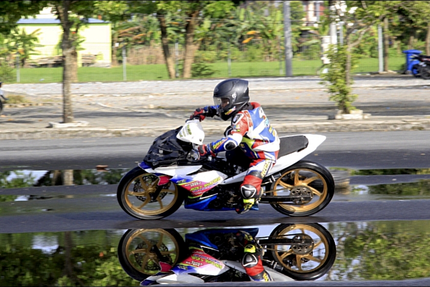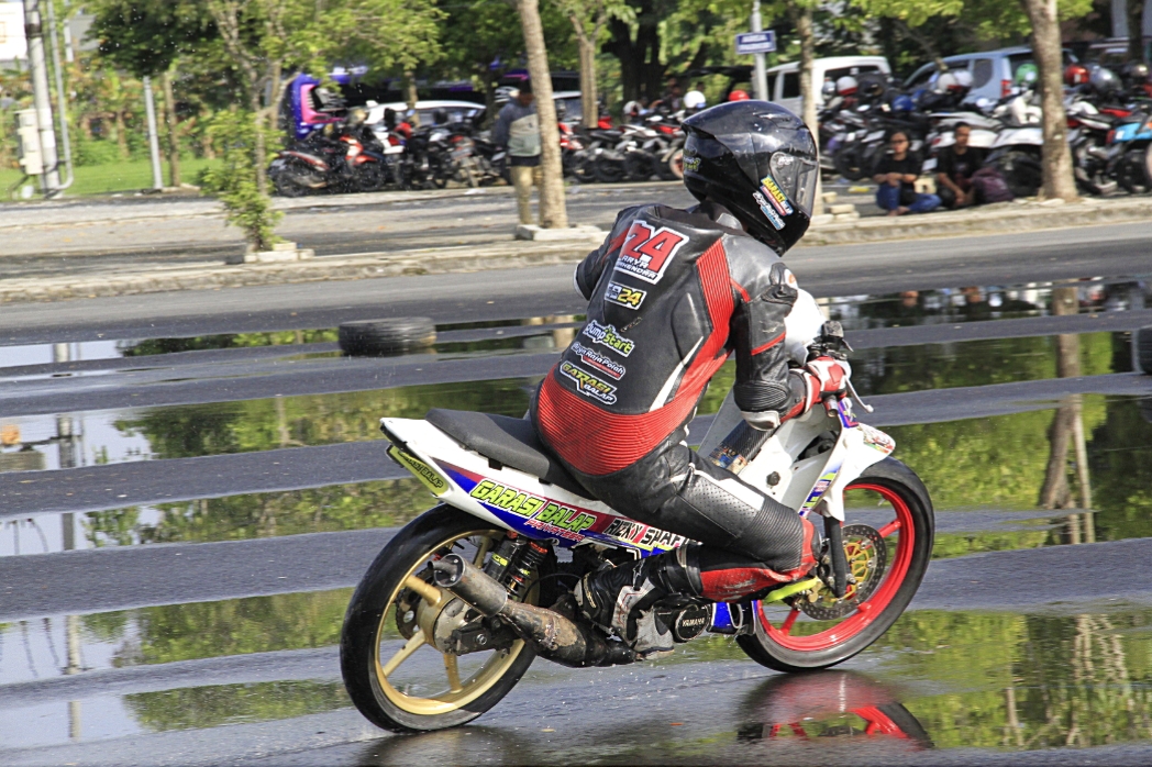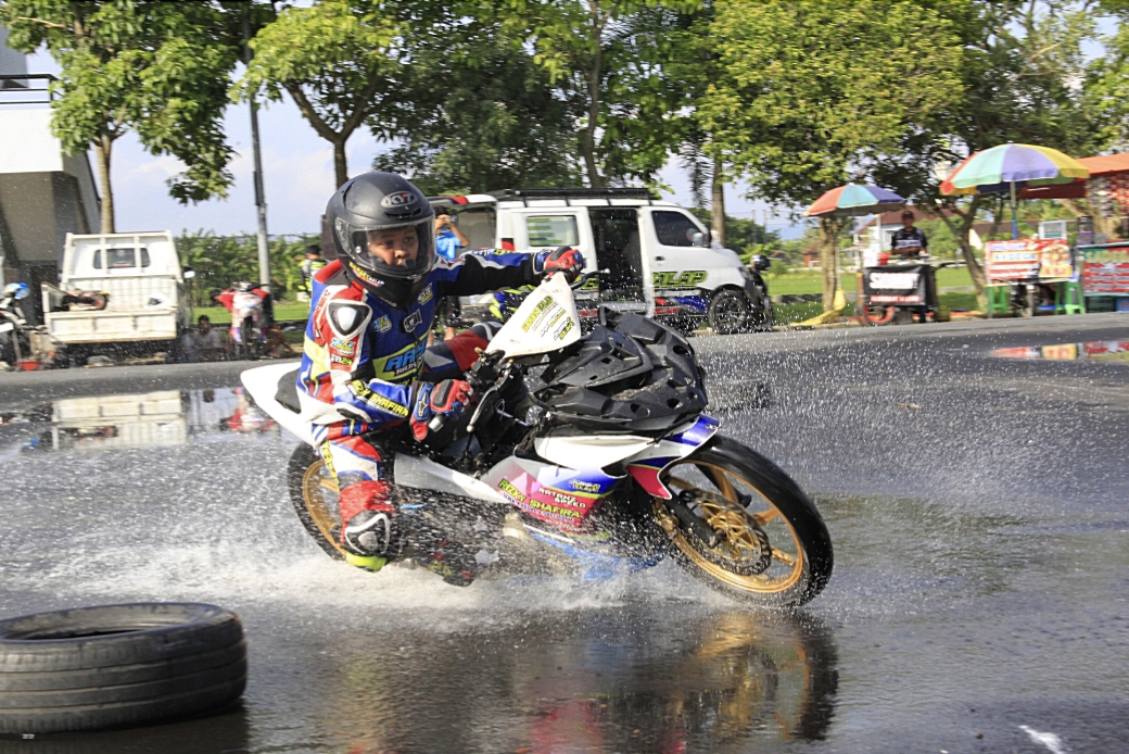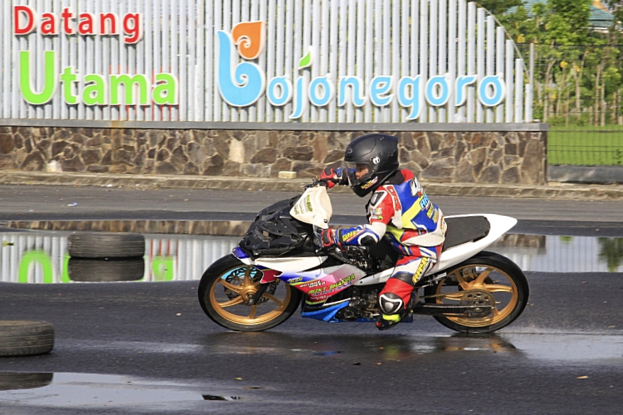 Dengan kondisi sirkuit flat GOR Bojonegoro ini, Erwan jadi makin sensitif dan dimudahkan memonitor lengkingan mesin, akselerasi, sampai soal suspensi depan belakang.