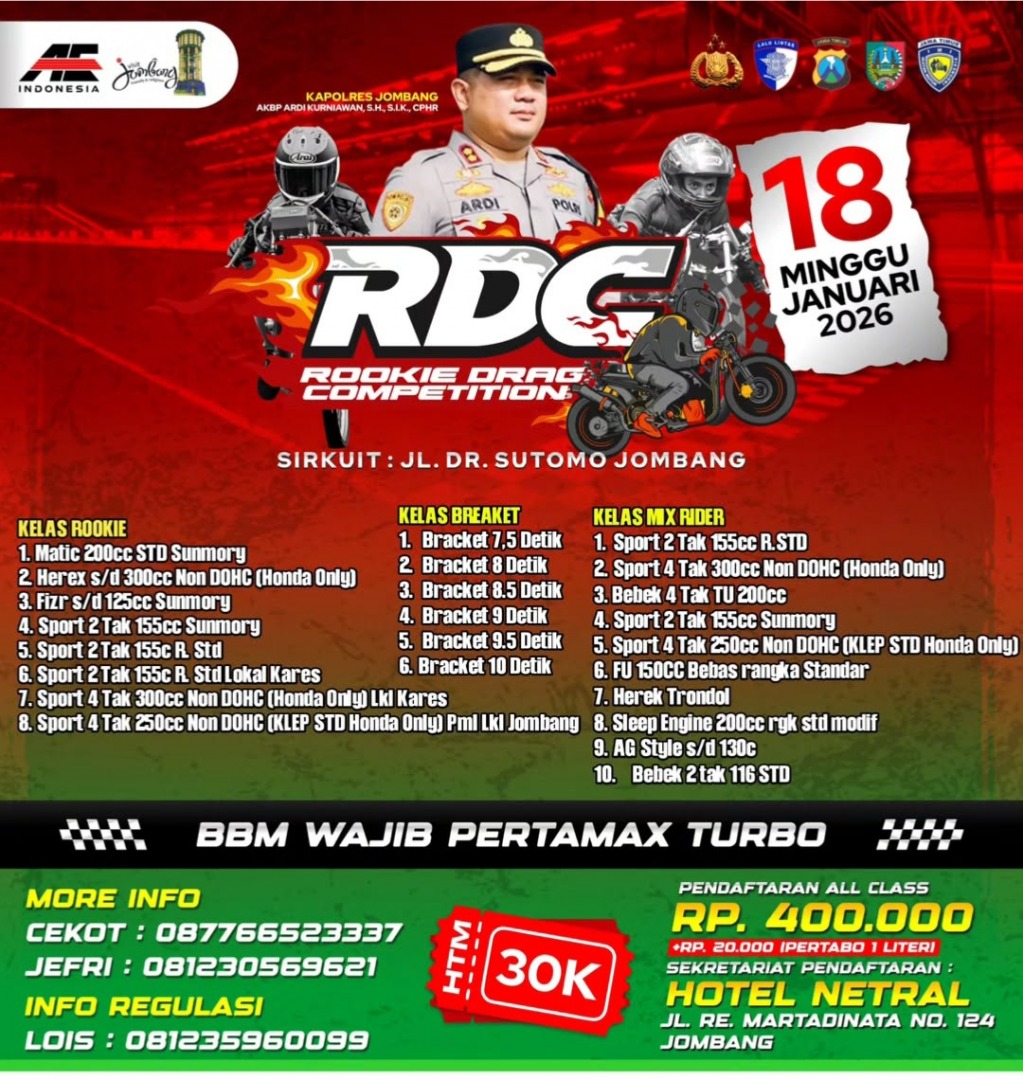 "Memang, butuh nyali rangkap 3 untuk merealisasi event Kapolres Cup Rookie Drag Competition 2026, Jombang.