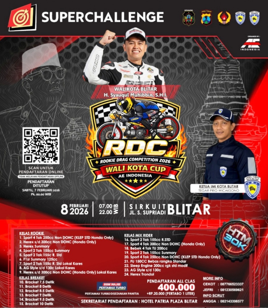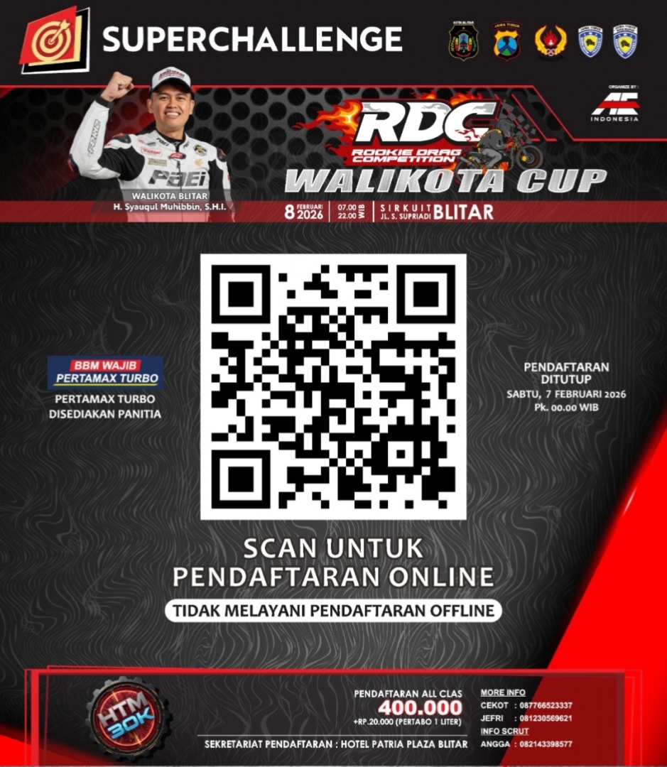 Mode otomatis, peluang menjadi champion terbuka lebar. Makin spesial, H. Syauqul Muhibbin S.H.I, Walikota Blitar, Tegar Prio Wicaksono Ketum Pengcab IMI Kota Blitar, serta jajaran Muspida turut mensuport sepenuhnya, olahraga prestasi di segmen otomotif ini.