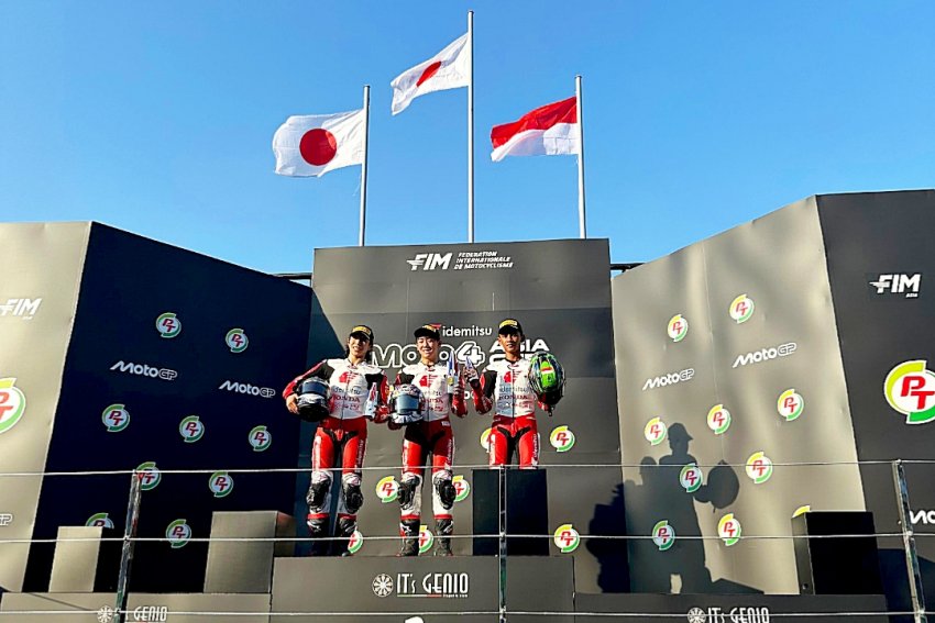 Podium ketiga menjadi milik Indonesia dengan kepungan dua pebalap Jepang di arena podium.