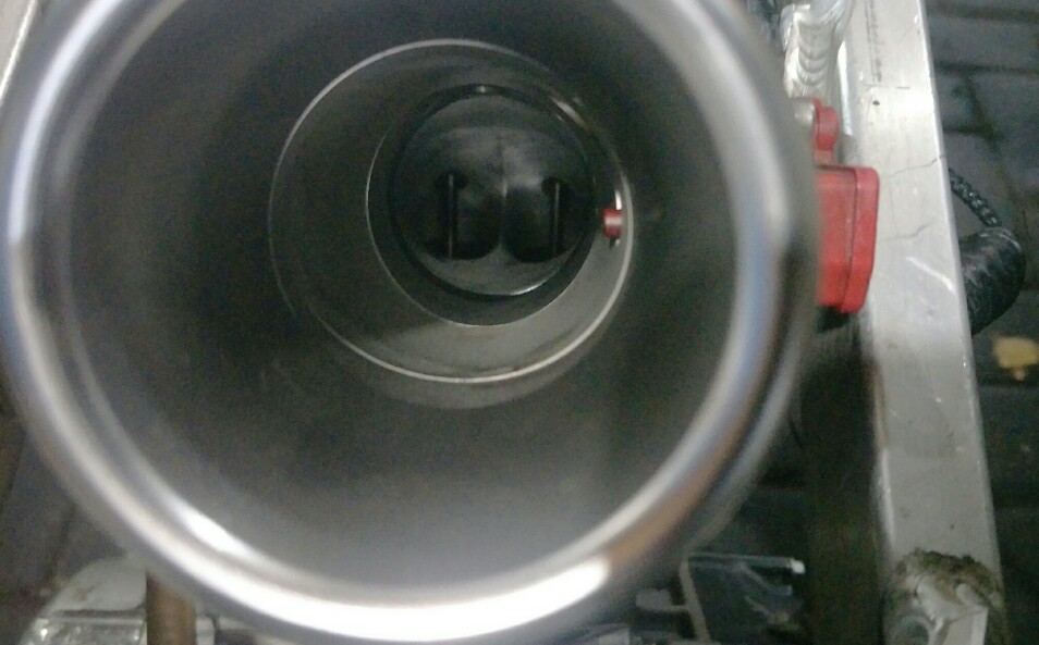 Sedang ex open diracik di 62 derajat dan close di 35 derajat, dilepas knalpot BSS berkonfigurasi leher 38 mm dan sarangan 55 mm.