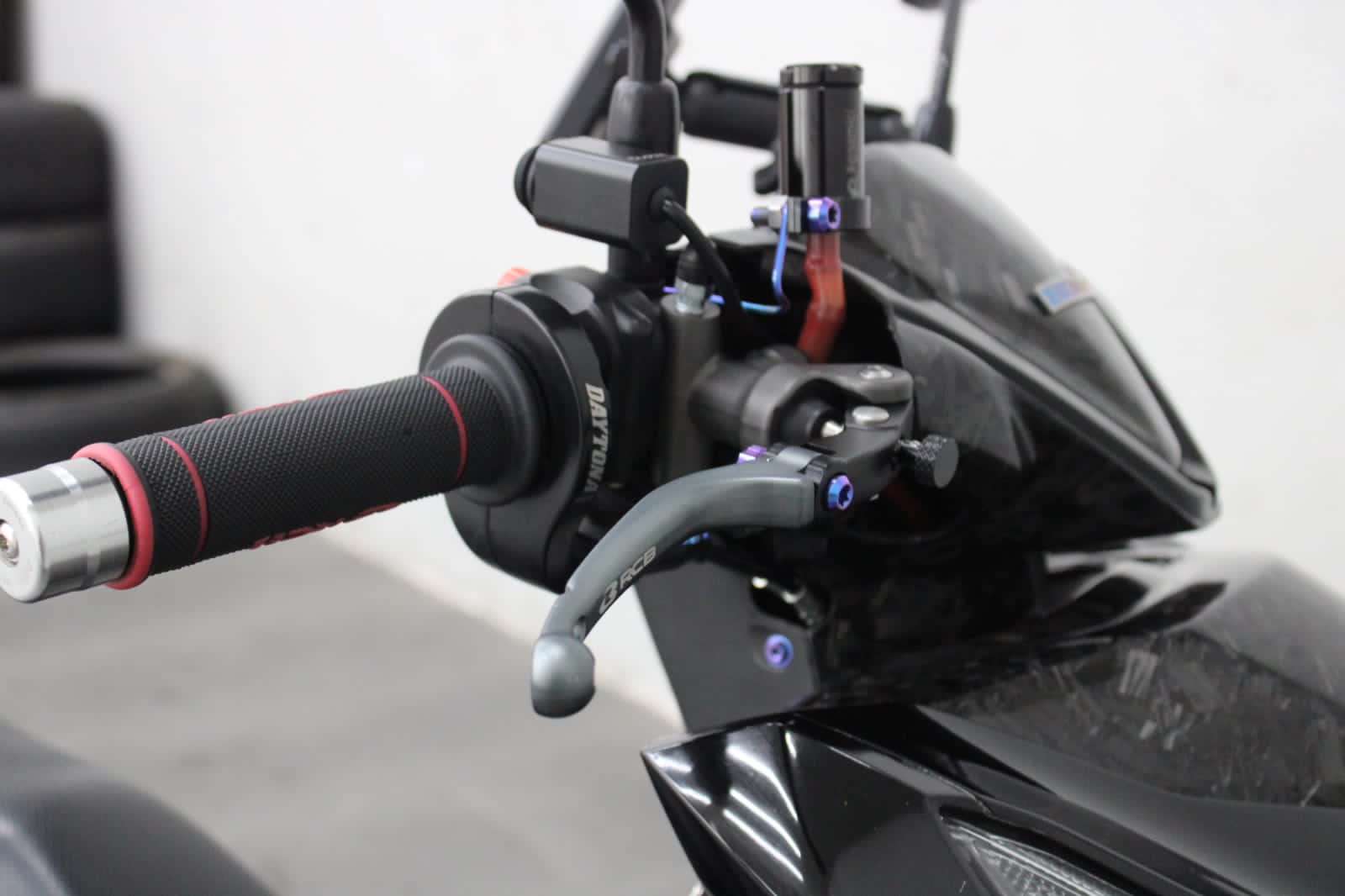 Di sisi kanan dibekali master RCB S1 dengan plunger 16 mm, berikut selang rem Hells dan reservoir Bonamici.
