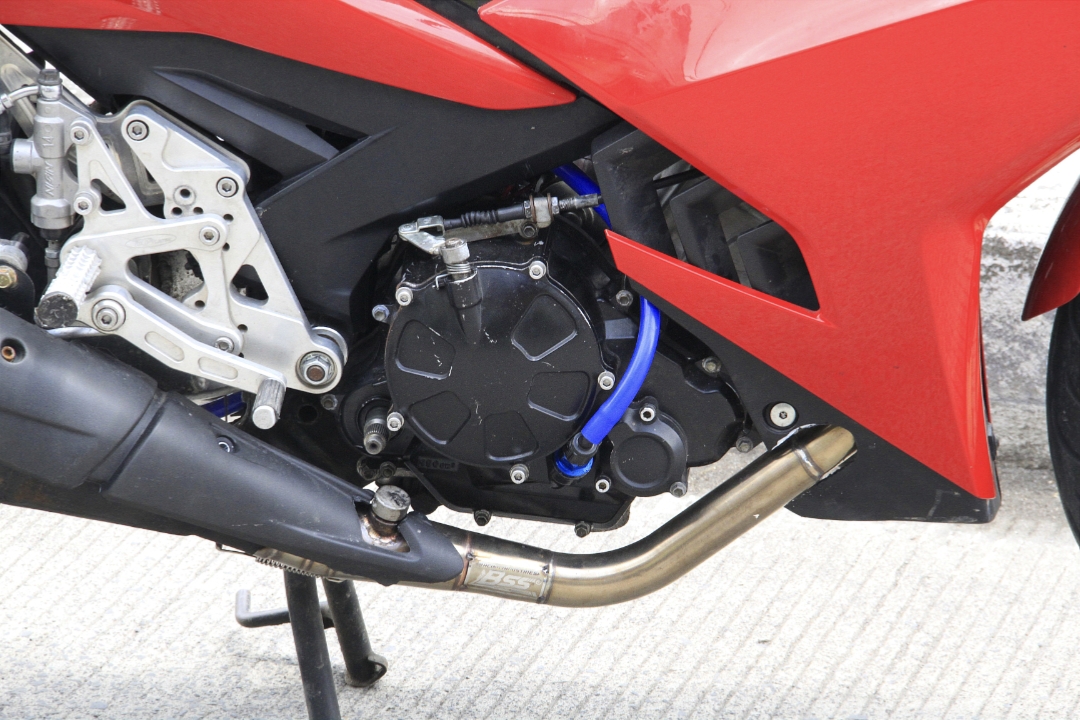 "Kelebihan brand FJN, Jarak pen 14 mm ke dome piston tercatat 12,5 mm, untuk menyajikan perbandingan kompresi 12,2 : 1, jadi lebih terukur, "terang Arul yang mencangkok radiator B Pro, dengan dimensi lebih besar.