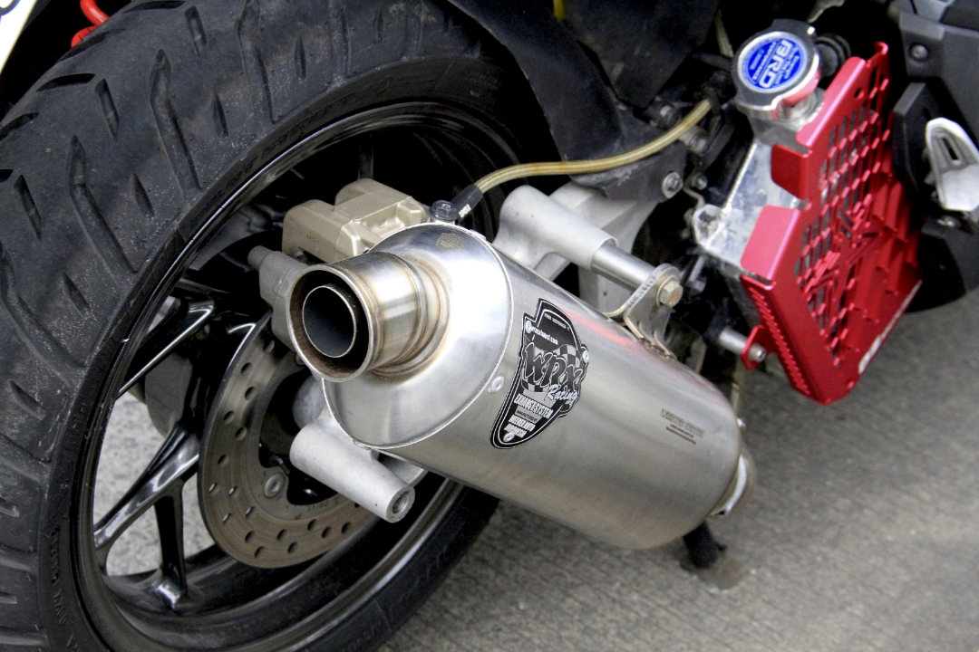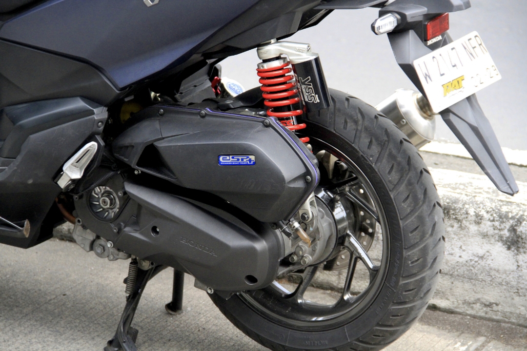 Selain pemakaian ban profil gambot, pada exterior Radit turut meminang suspensi belakang dari YSS, cakram depan aftermarket, serta revalving suspensi depan, untuk meningkatkan traksi juga kenyamanan. skg