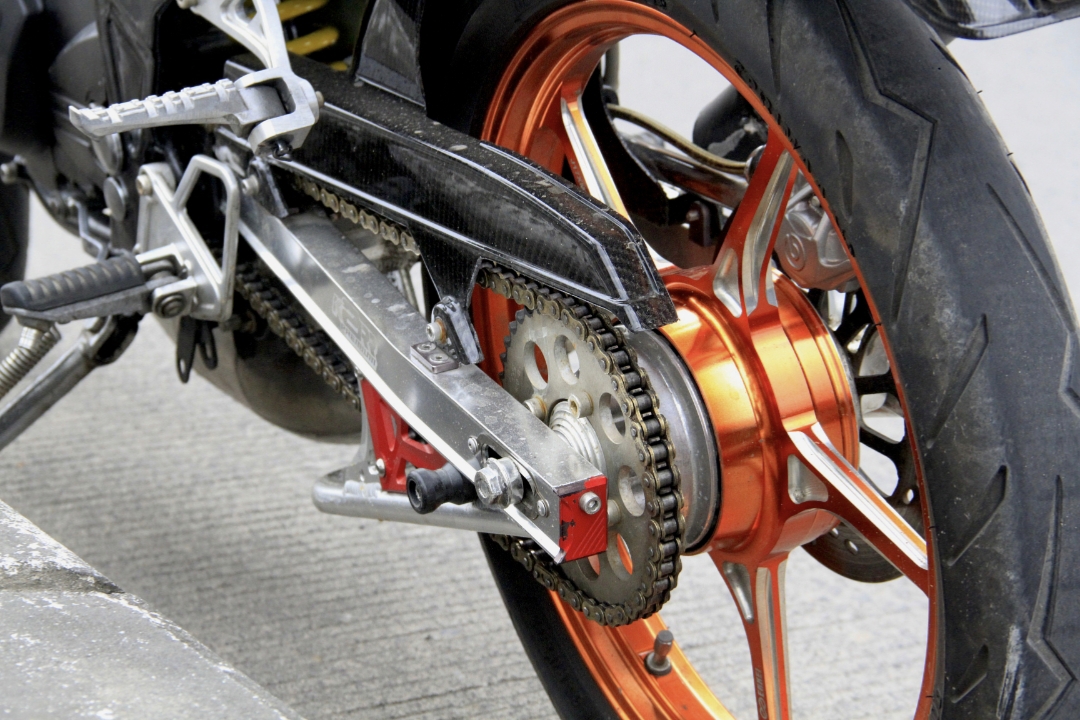 Lanjut dimampatkan perbandingan Kompresi 14 : 1, serta seting final gear 14-41, spesial untuk mendongkrak gasingan bawah tengah, seperti request Habib Ahmad.
