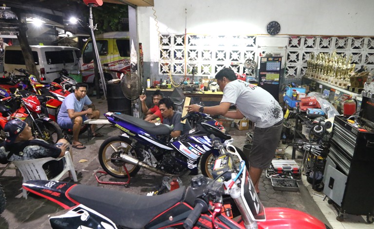 “Maka, jauh hari sebelum even berlangsung, himbauan saya segera berlakukan regulasi dan aturan untuk sport trail pendatang baru ini, mudah menebaknya, ”wanti Pak Be yang workshopnya belakangan ini ramai dikunjungi kolega grasstrack Jatim. teks - foto : Collins