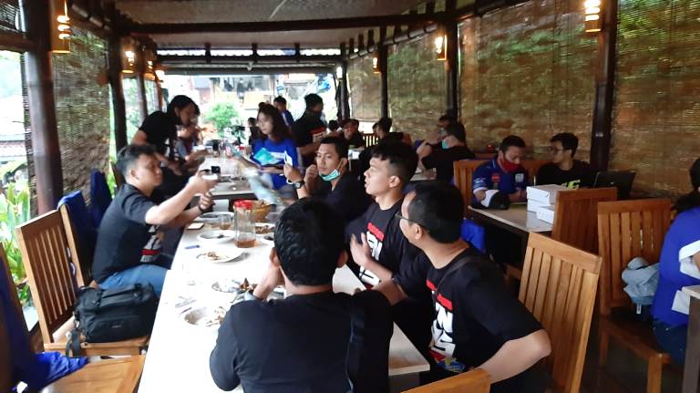 Waktu 120 menit dinilai cukup puas menikmati sajian menu makanan. Riding lanjut ke resto Maju Mapan, Pacet, sebagai check point 5.