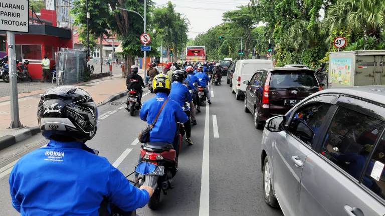 Mode dan konsentasi riding di etape ini, sudah terbagi oleh padatnya jalur Raya Pandaan. Belum lagi terbawa arus lalu lintas kecepatan tinggi.
