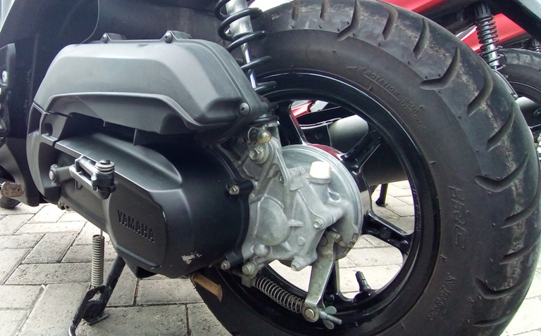 Paduan wheel base proporsional, tetap stabil dipakai manuver tajam, dengan kontur trek tanjakan. Keberadaan tangki yang ada di bawah floor board, juga berkontribusi mendukung center of gravity ideal.