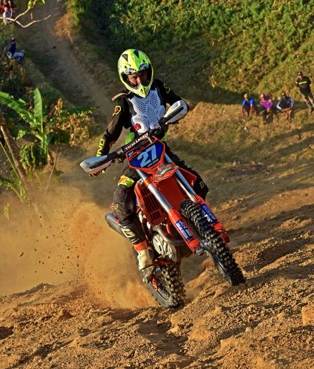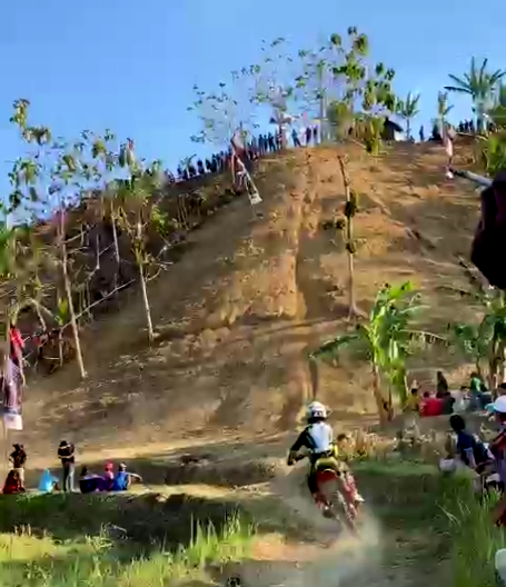 "Kalau dibedakan dengan KTM 500 cc 4 tak, justru lebih tepat di kontur tanjakan nafas panjang, "puas Galang yang all out disuport oleh bunda-nya..