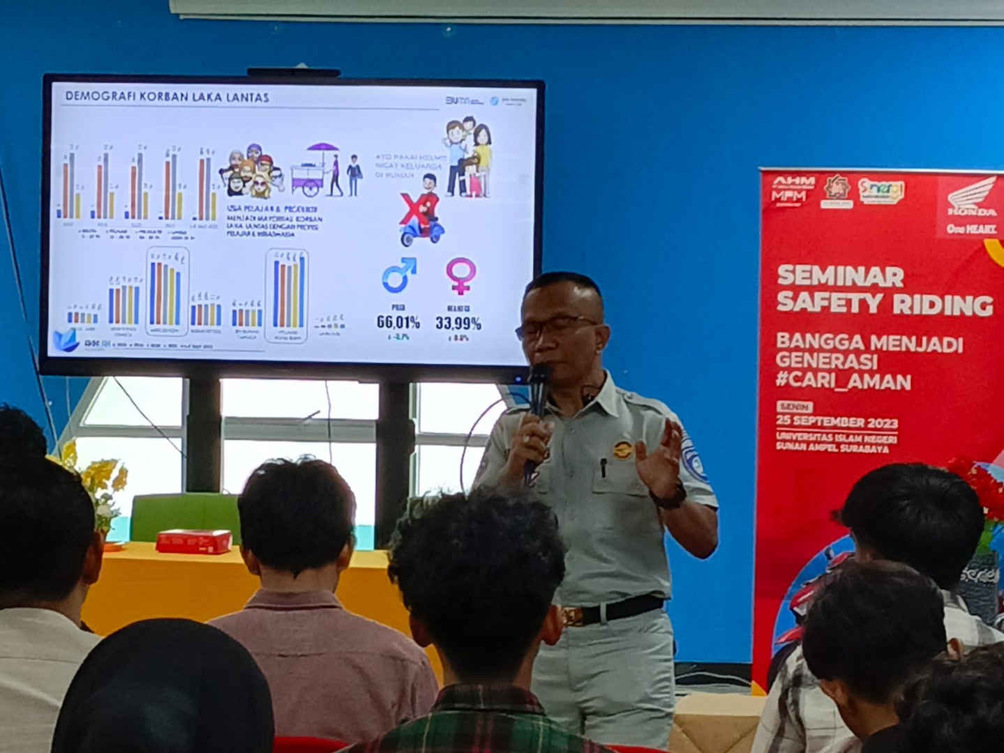 Gelaran edukasi safety riding yang berlangsung pada 25 September 2023 dengan tajuk Seminar “Bangga menjadi Generasi #Cari_aman”.