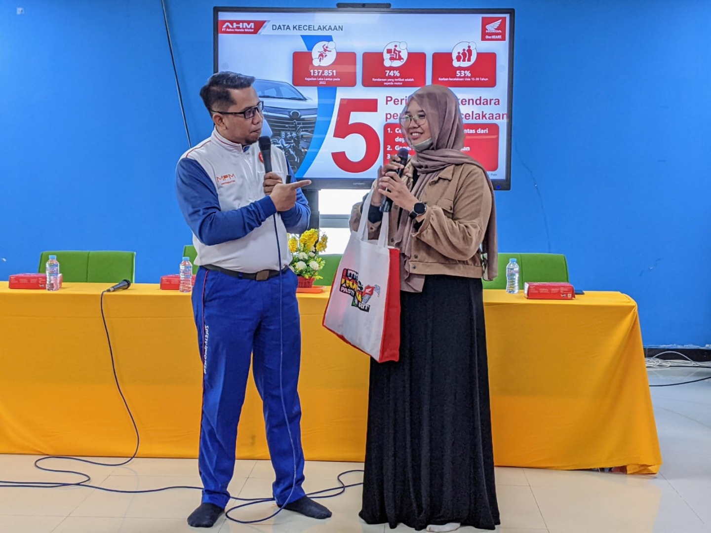 “Sebagai generasi muda, mahasiswa bisa menjadi agent safety riding yang akan menyampaikan pesan keselamatan berkendara kepada lingkungannya maupun masyarakat luas.