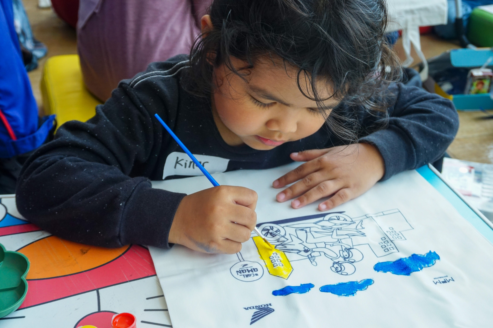 Selanjutnya, anak-anak diberikan edukasi dan pemahaman melalui metode bermain dan belajar mengenai keselamatan berkendara sejak dini seperti mewarnai.